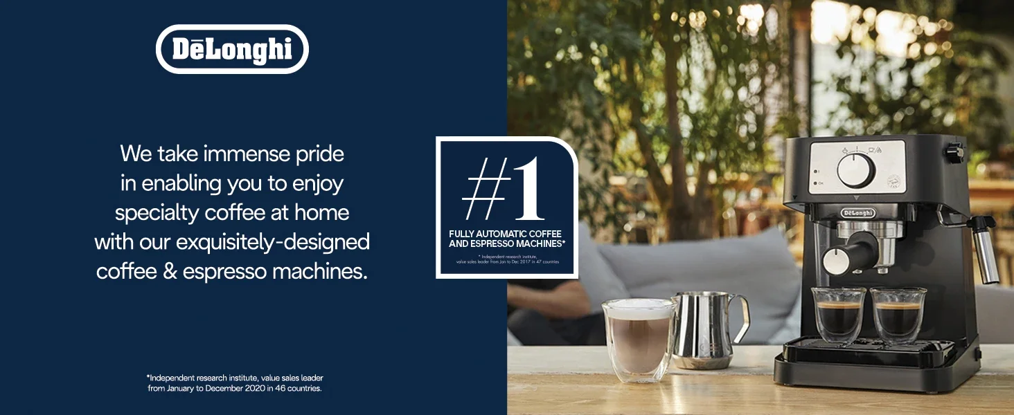 Stilosa is an elegantly designed espresso machine that elevates your espresso experience at home. We've incorporated new features that let you easily craft authentic espressos, lattes and cappuccinos with ease, just the way you like them. With its compact, contemporary design, innovative features and streamlined process, the perfect espresso is more accessible than ever before with Stilosa by De'Longhi.